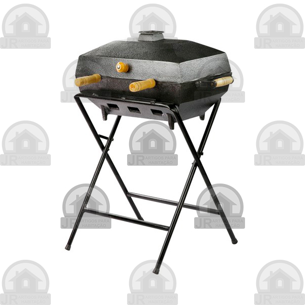 Churrasqueira Bafo Alumínio Quadrada Craqueada Preta com Suporte Tubular