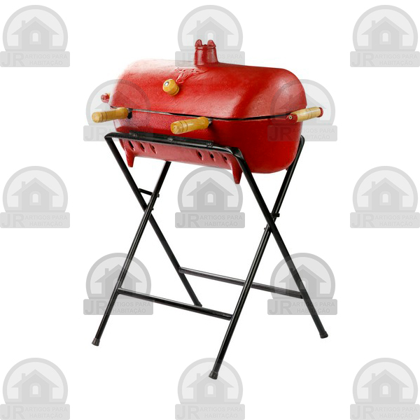 Churrasqueira Bafo Alumínio Grande Vermelha com Suporte Tubular Aço