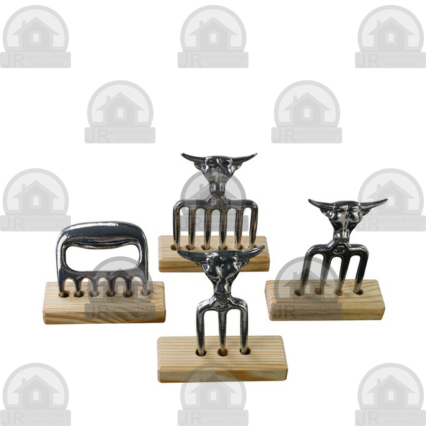Kit churrasco Garfos e Garra de Urso feito em alumínio fundido com acabamento em pintura eletrostática cromada. Possui 15 cm de altura aproximadamente.