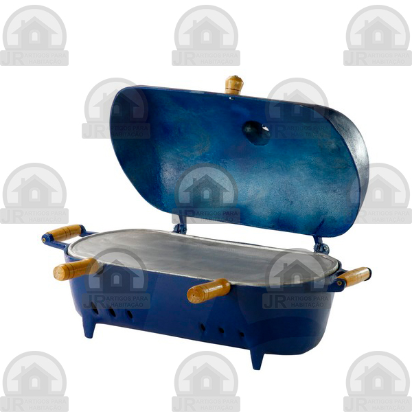 Churrasqueira Bafo Alumínio Grande Azul - Grelha Modelo Chapa