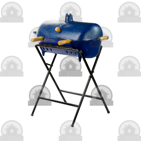 Churrasqueira Bafo Alumínio Grande Azul com Suporte Tubular Aço