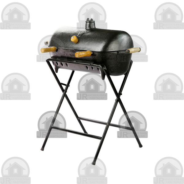 Churrasqueira Bafo Alumínio Grande Preta com Suporte Tubular Aço