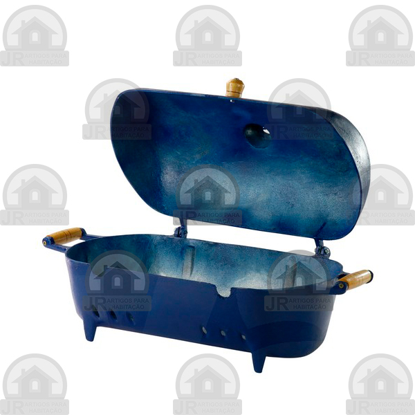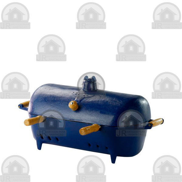 Churrasqueira em alumínio fundido com acabamento em pintura eletrostática craqueado preta.