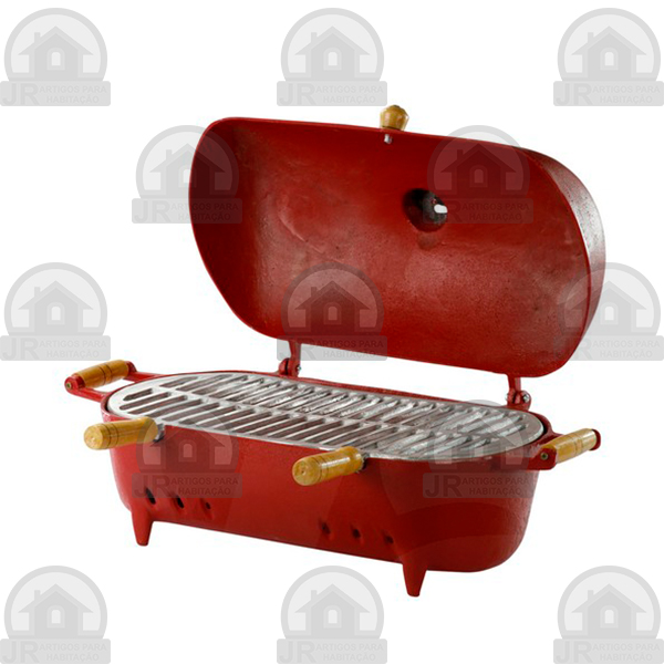 Churrasqueira em alumínio fundido com acabamento em pintura eletrostática craqueado preta.