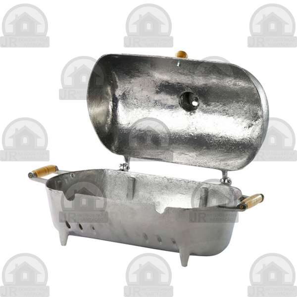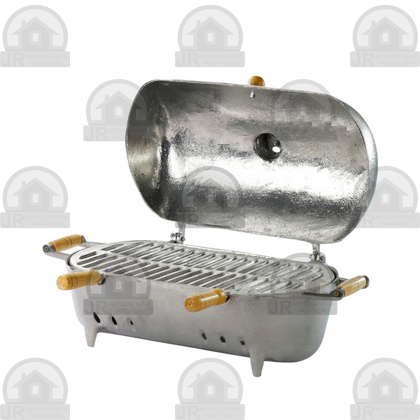 Churrasqueira em alumínio fundido com acabamento em pintura eletrostática craqueado preta.