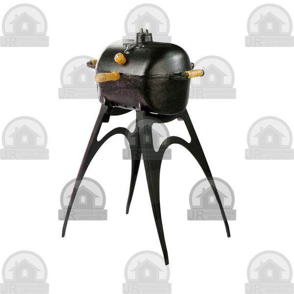 Churrasqueira em alumínio fundido com acabamento escovado.