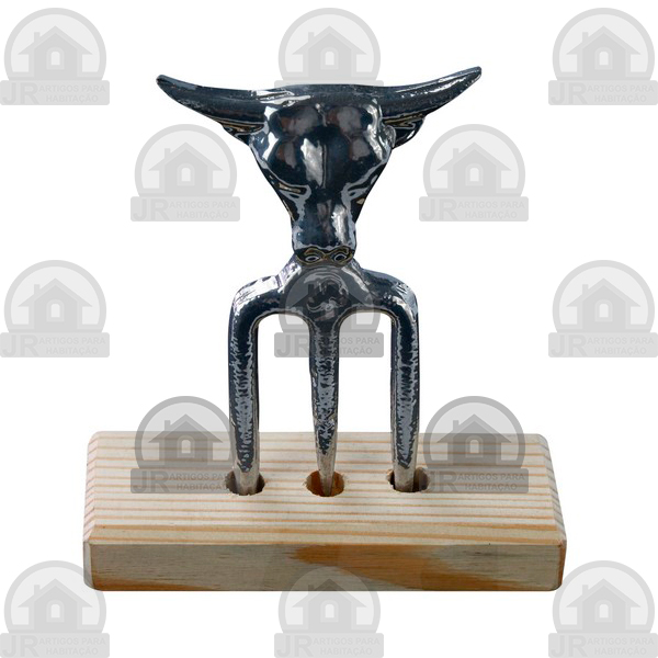 Garfo Touro Tridente feito em alumínio fundido com acabamento cromado. Possui 15cm de altura aproximadamente.